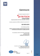 The management system of FRITSCH has been assessed and certified as meeting the requirements of ISO 9001:2015!